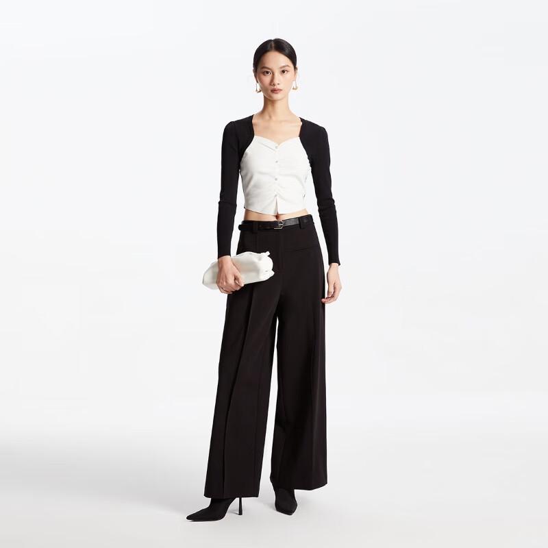 VEROMODA Women's Spliced Slim-Fit Pleated V-Neck Knit Top