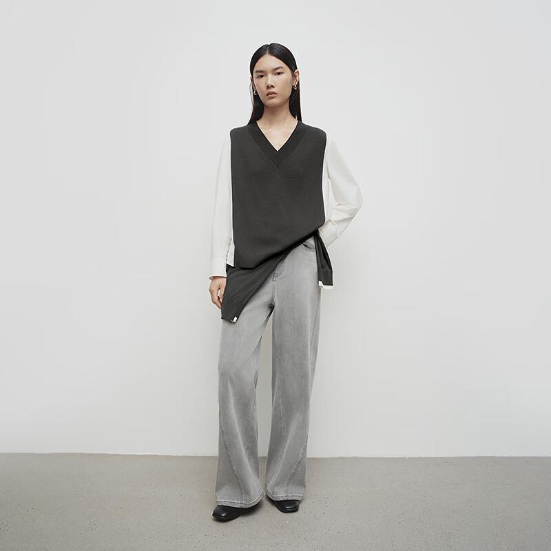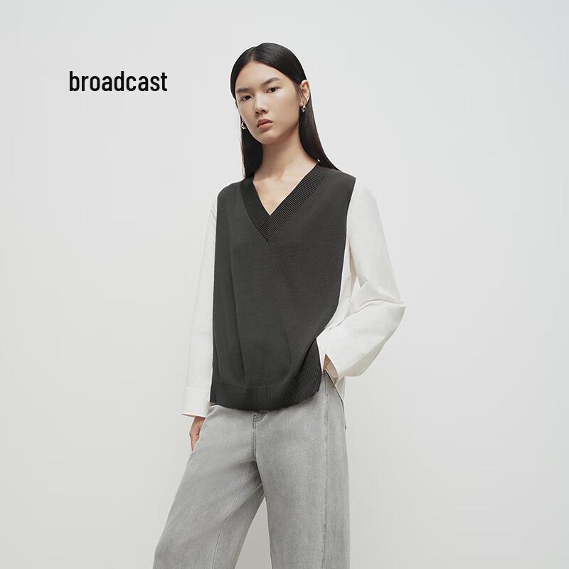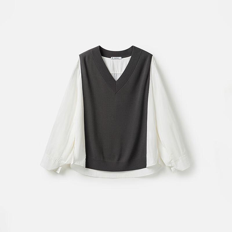 Broadcast Women's Faux Two-Piece Patchwork V-Neck Sweater