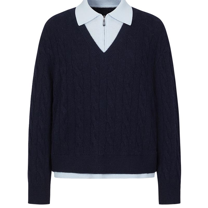 Джиузи Аннаколь Серия MIU Преппи Лацкан Имитация Двойки Вязаный Свитер