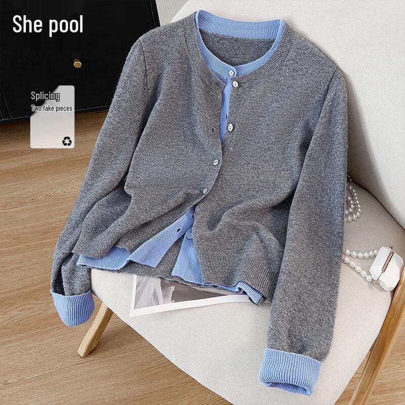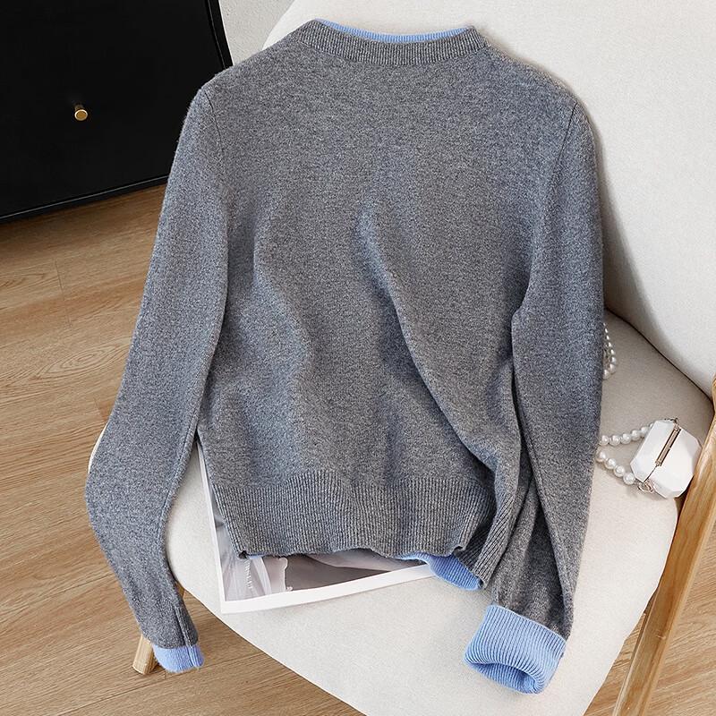 Женский вязаный свитер с круглым вырезом, имитирующий костюм-двойку