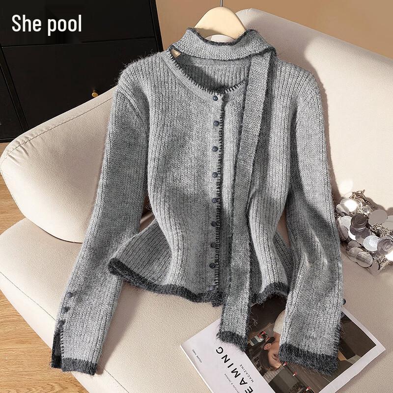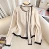 Women's Wool Blend Color-Block Round Neck Cardigan