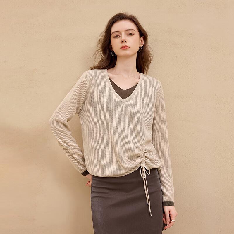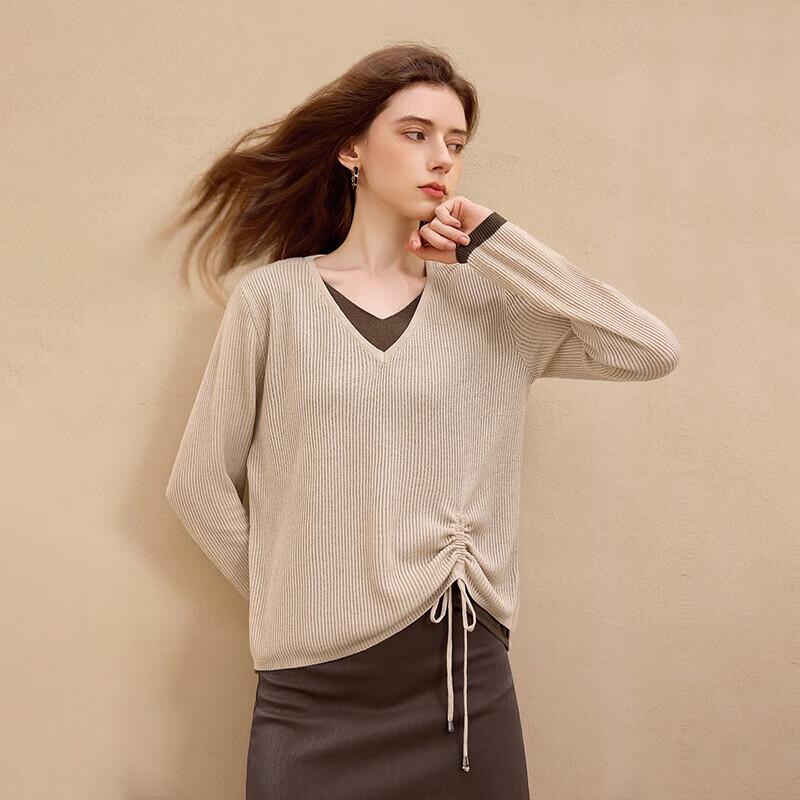 Women's Contrast V-neck Fake Two-Piece Knit Top