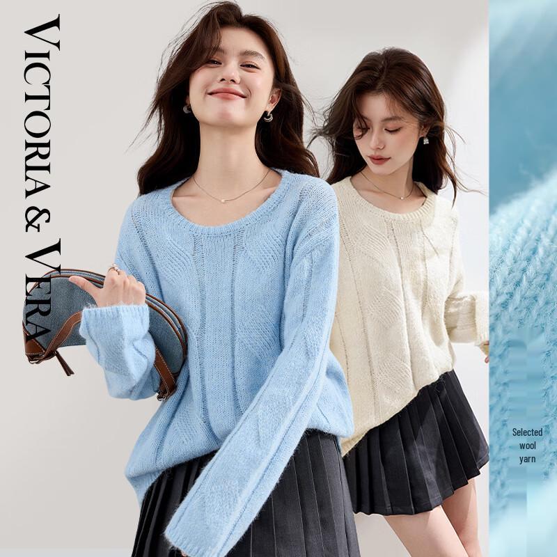 VICTORIA&VERA Women's Fall Wool Blend Round Neck Sweater