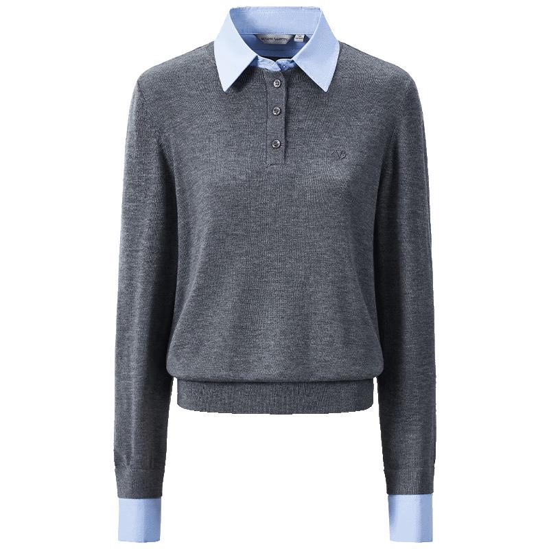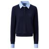 GIOVANNI VALENTINO Women's Faux Two-Piece Patchwork Polo Collar Knit Sweater