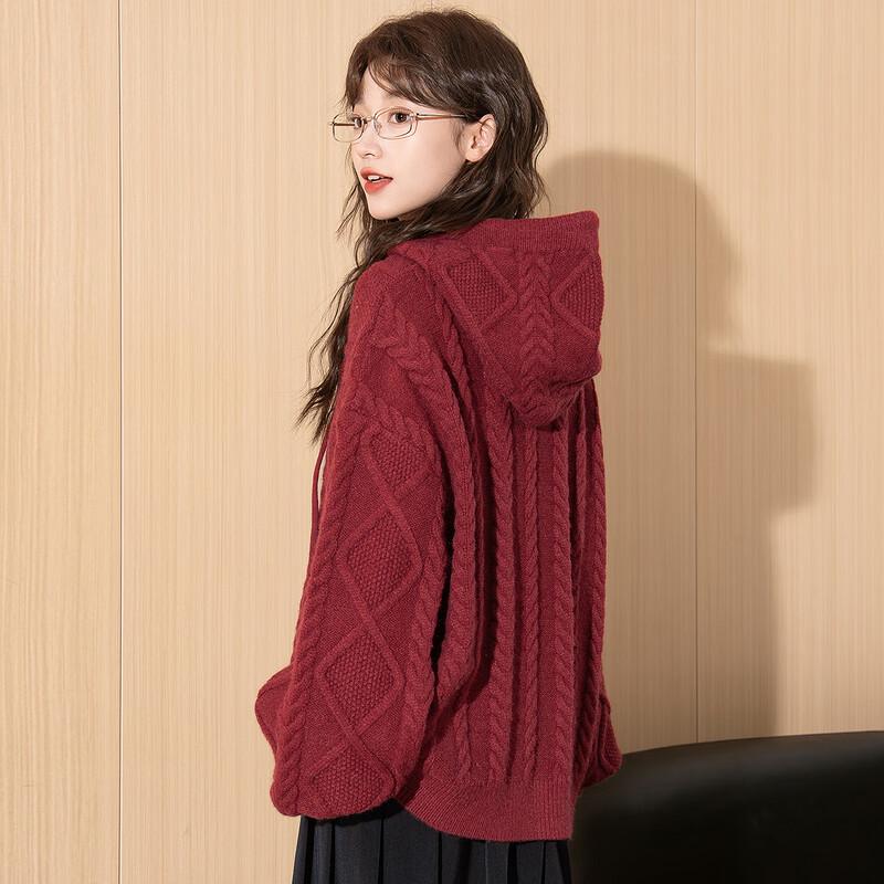 TonLion Women's Hooded Cable Knit Toggle Button Cardigan
