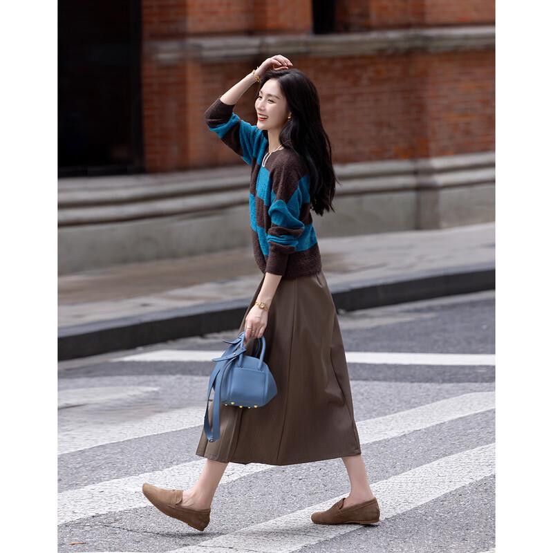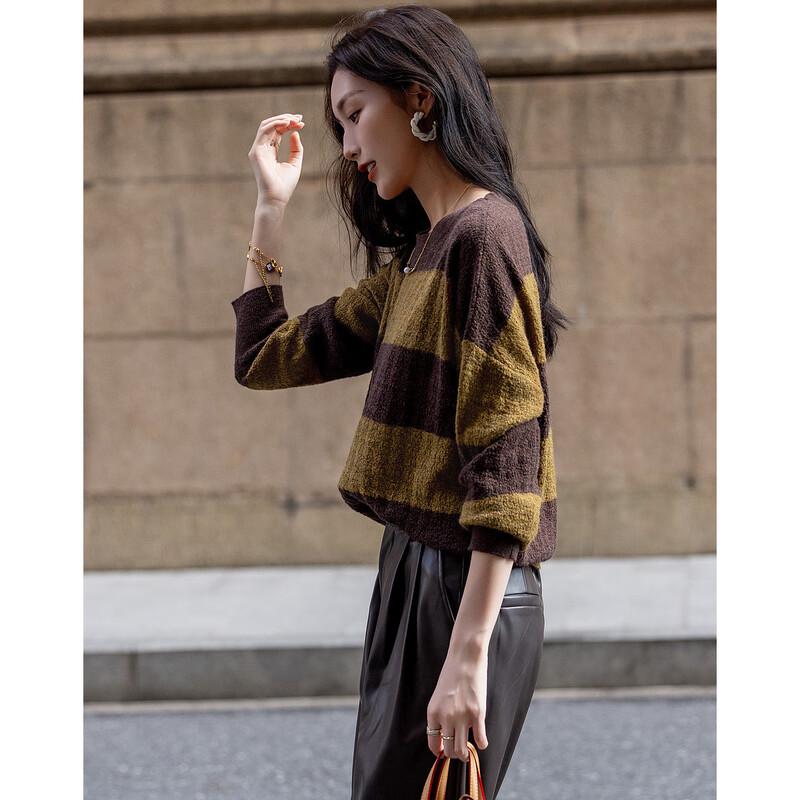 Женский полосатый вязаный свитер из смесовой шерсти