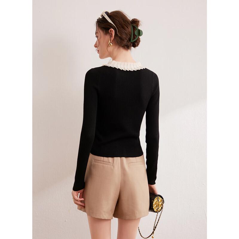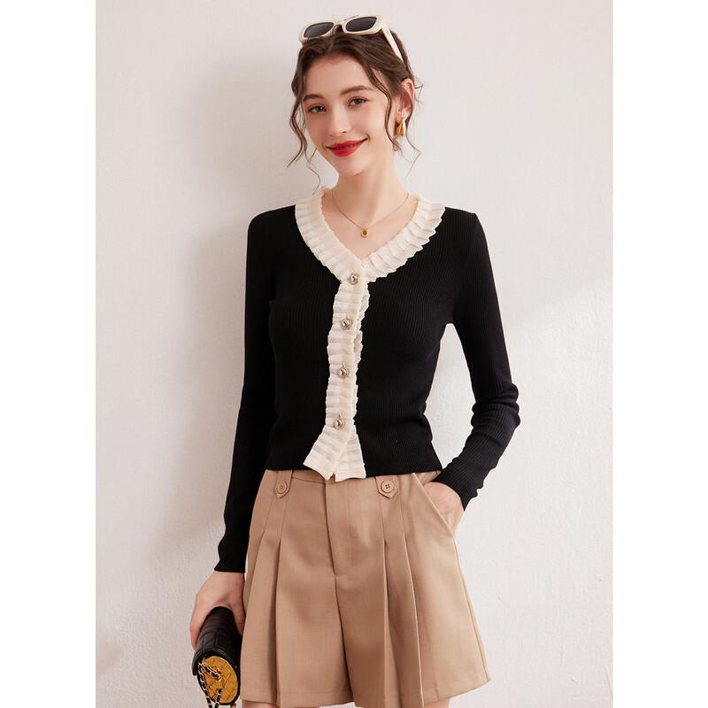 Bailuyu Women's V-Neck Color-Block Knitted Cardigan