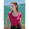 Топ трикотажный с кружевной отделкой Sancai 2025 Лето