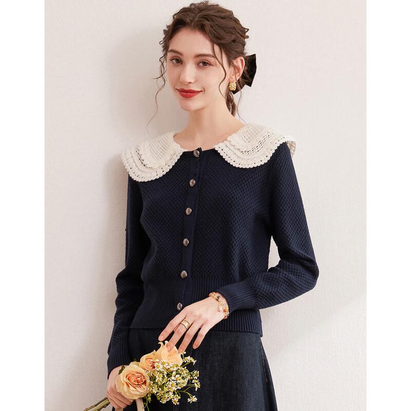 Bailuyu Women's Petal Collar Colorblock Knit Cardigan