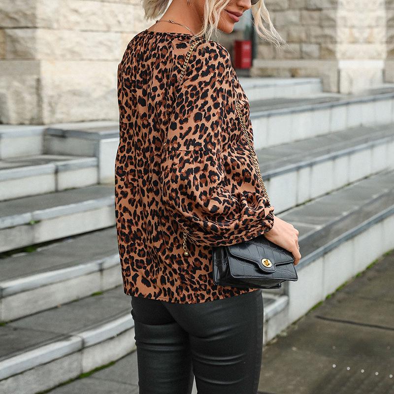 Женский пуловер с длинным рукавом из шифона с леопардовым принтом, весна 2025