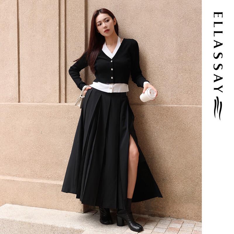 ELLASSAY 100% Merino Wool Faux Two-Piece Halter V-Neck Knit Sweater