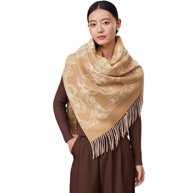 Shanghai Story Women's 100% Pure Wool Jacquard Tassel Shawl