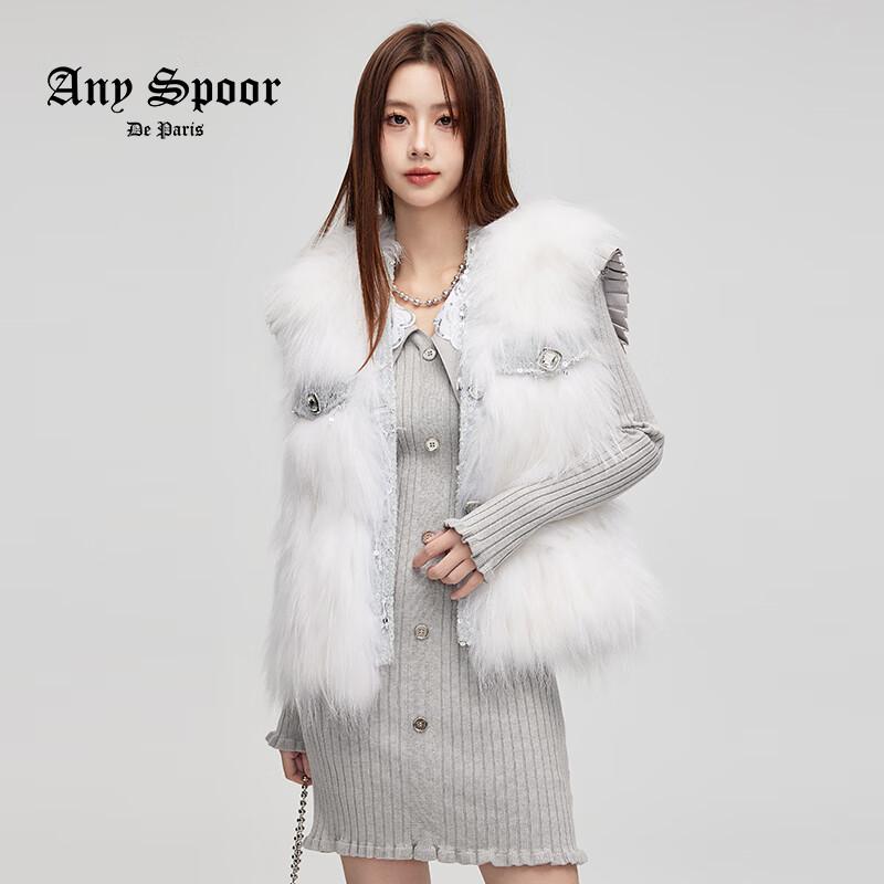 ANY SPOOR Women's Sequin & Faux Fur Denim Vest — купить товар онлайн с бесплатной доставкой по всему миру!