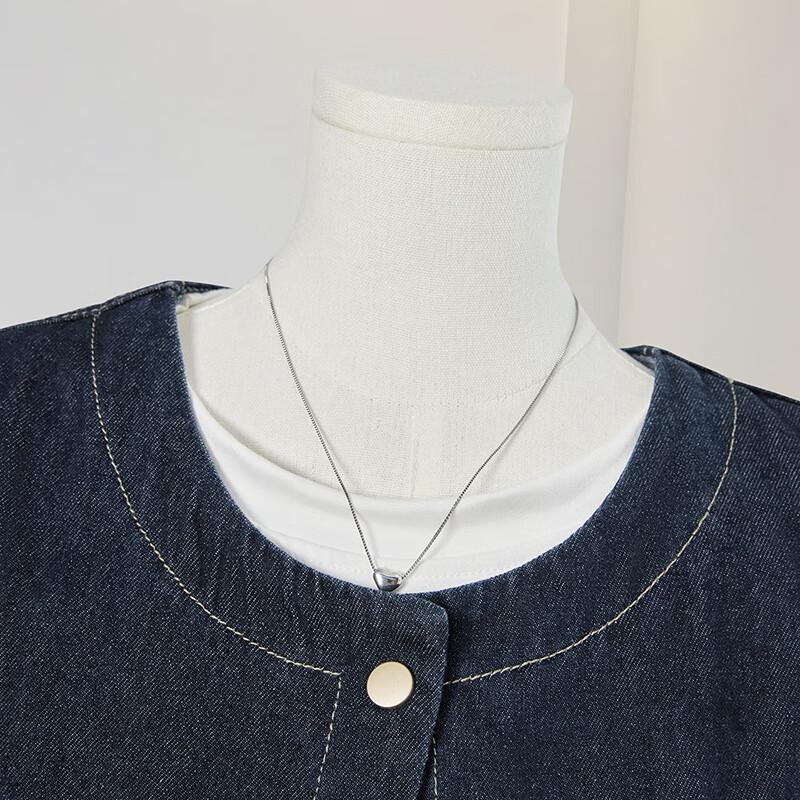 Женский джинсовый жилет в студенческом стиле с круглым вырезом
