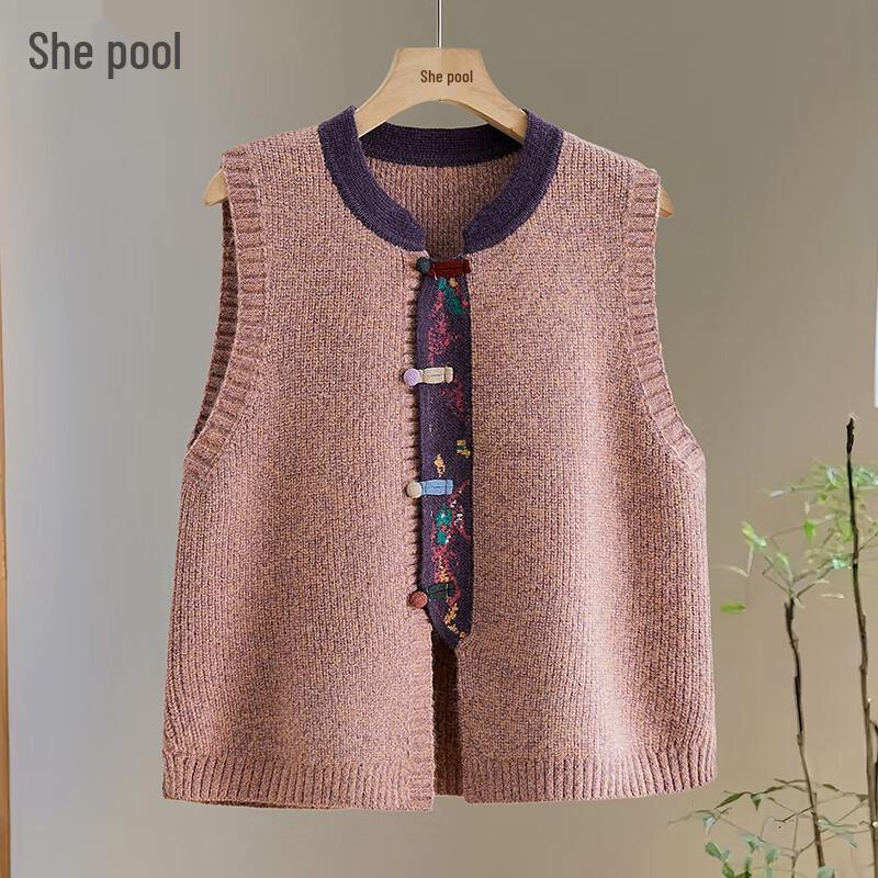 TACHI Женский ретро-жилет в новом китайском стиле, вязаный пэчворк