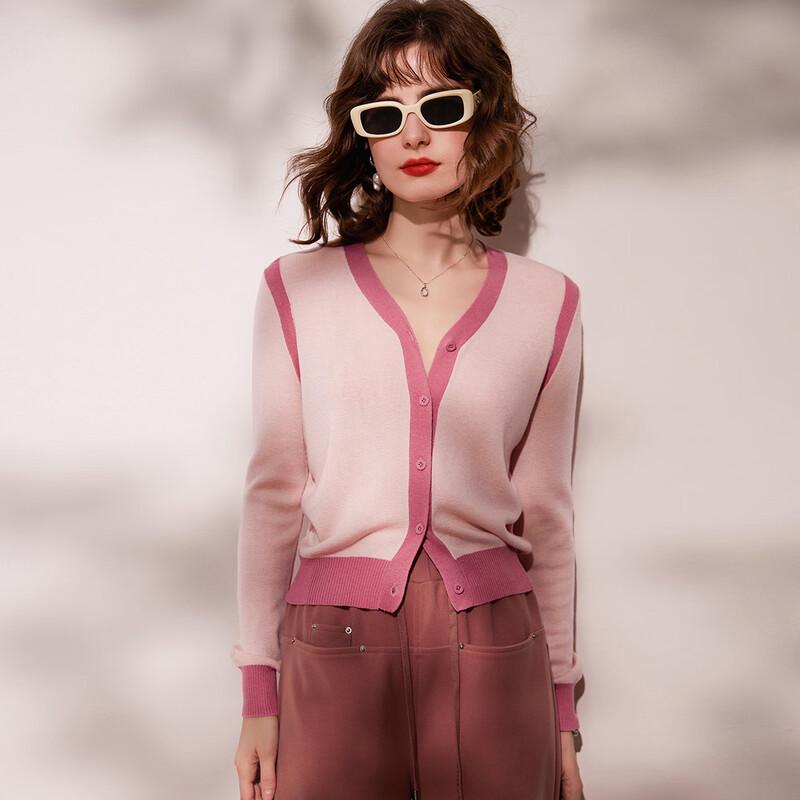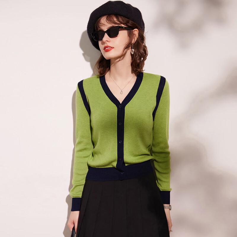 Women's V-Neck Color-Block Knit Cardigan