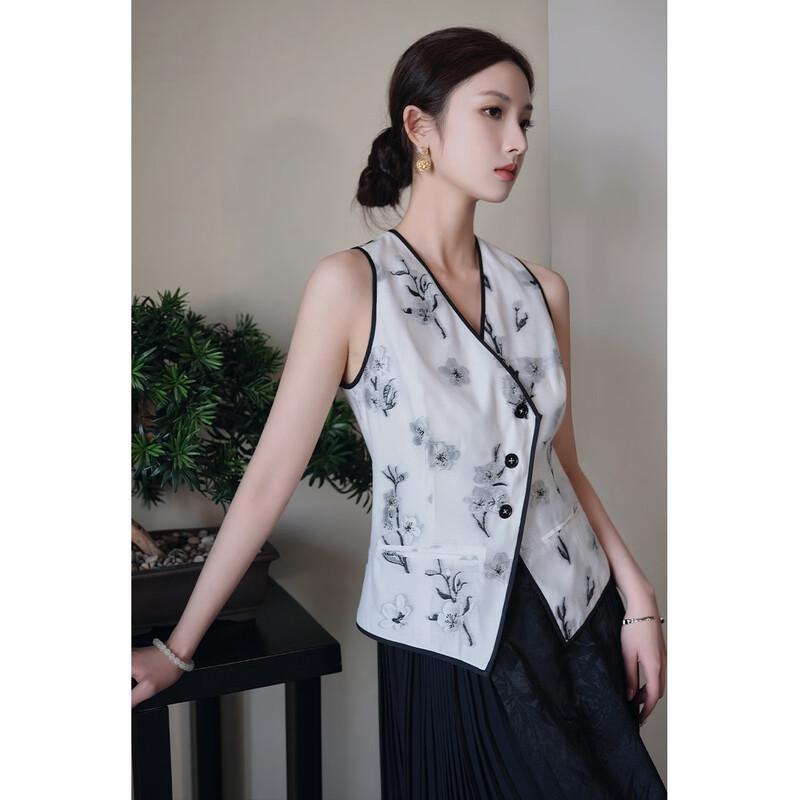 JK&JS Новый китайский стиль, цветочный жилет с V-образным вырезом, выполненный в технике каллиграфии и живописи тушью