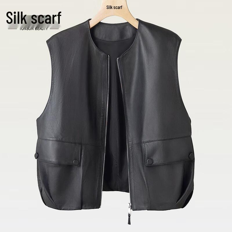Women's Solid Round Neck Faux Leather Look Vest