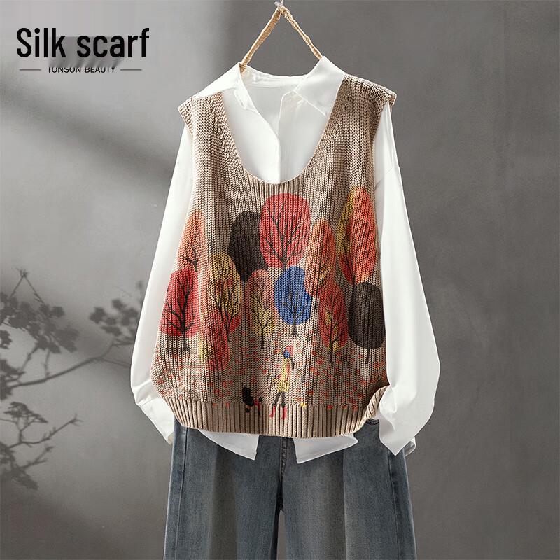 Женский жилет асимметричного кроя в литературном стиле с цветными блоками