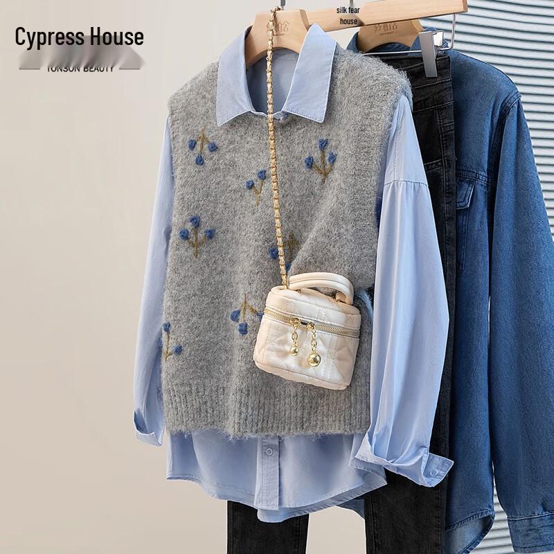 Женский жилет из смесовой шерсти с цветочной вышивкой