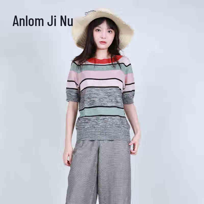 Anlom Полосатый трикотажный топ с круглым вырезом и рукавами до локтя