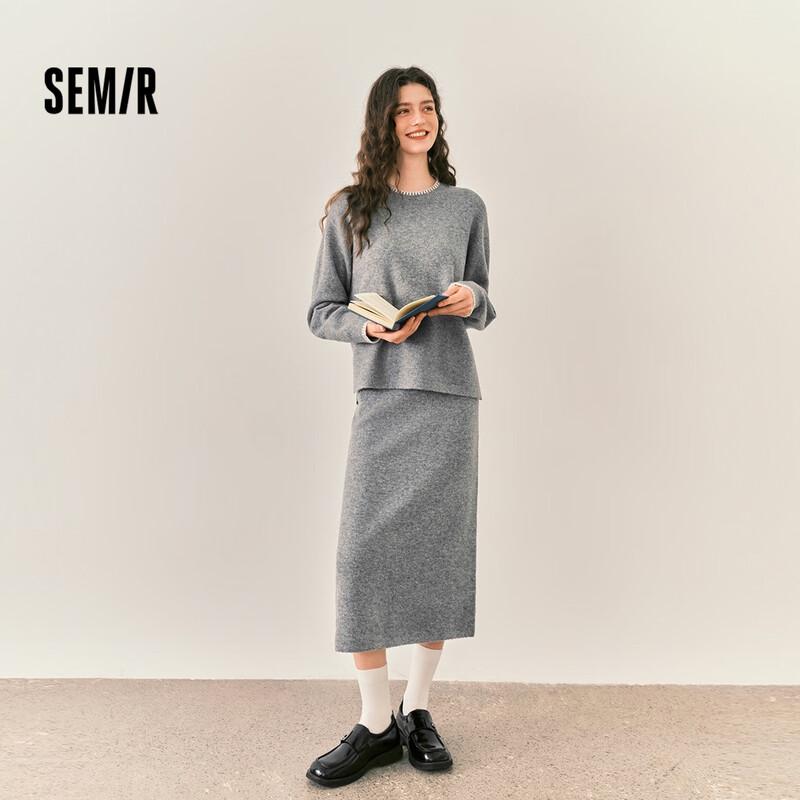 Женский свитер с цветными блоками и разрезом и длинная юбка, комплект из двух предметов