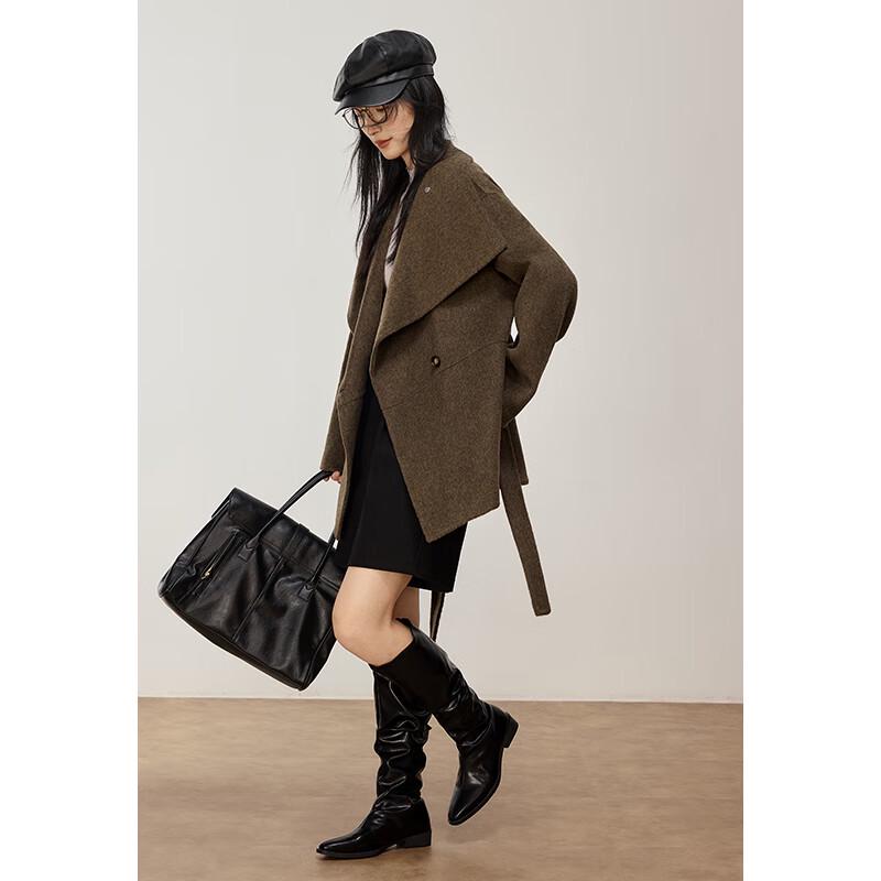 VICTORIA&VERA Women's Double-Faced Wool Blend Coat with Convertible Collar