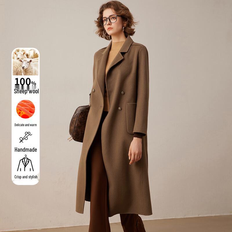 Bailuyu Women's 100% Merino Wool Double-Breasted Longline Coat
