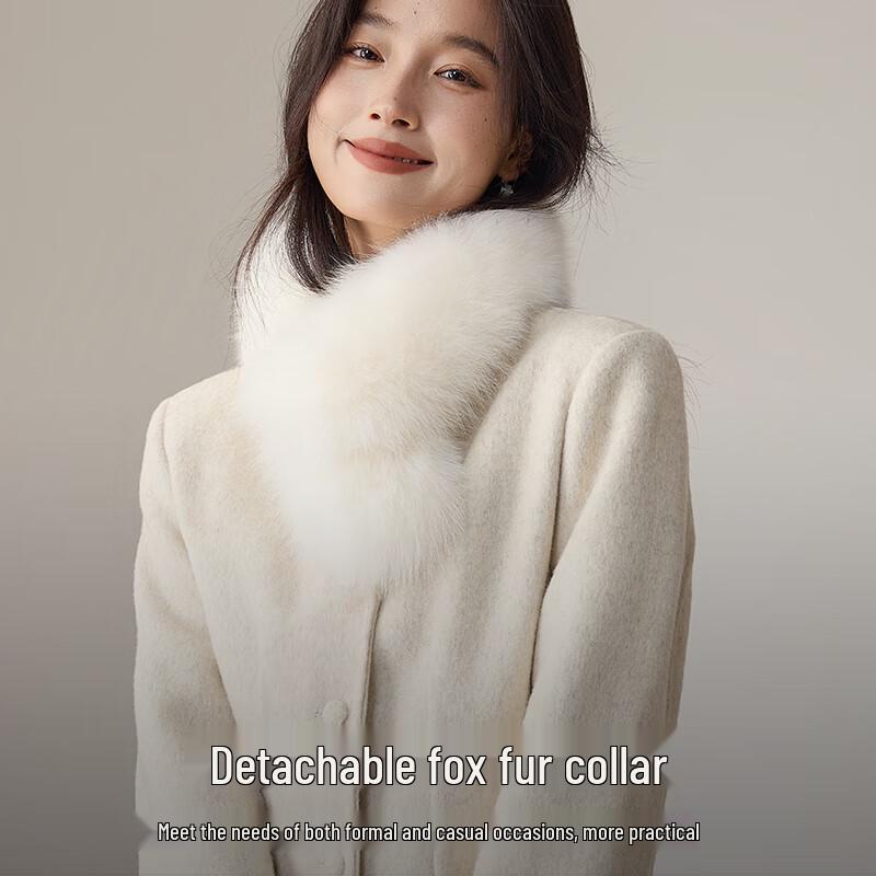 VICTORIA&VERA Women's Belted Short Wool Blend Coat with Fox Fur Collar — купить товар онлайн с бесплатной доставкой по всему миру!