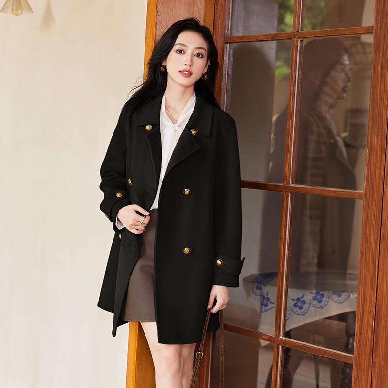 VICTORIA&VERA Women's Gold Double-Breasted Wool Coat