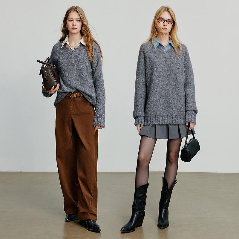 Свободный женский трикотажный свитер Chuyu с V-образным вырезом и пайетками, из смесовой шерсти