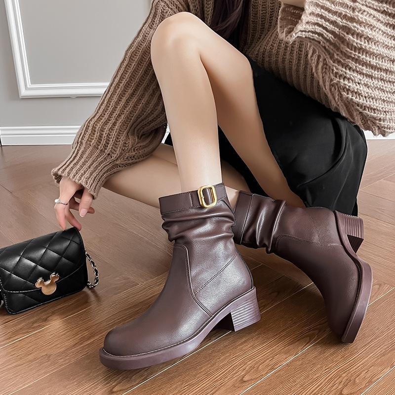 Retro pleated boots This year's popular western style mid-tube boots 2025 autumn and winter with Martin boots short boots for women