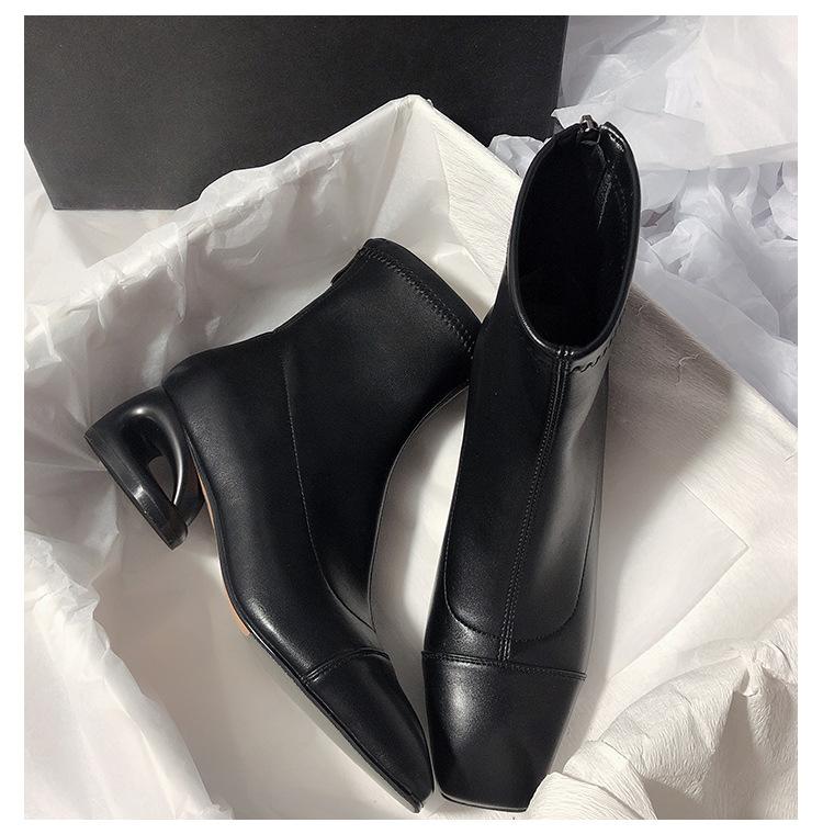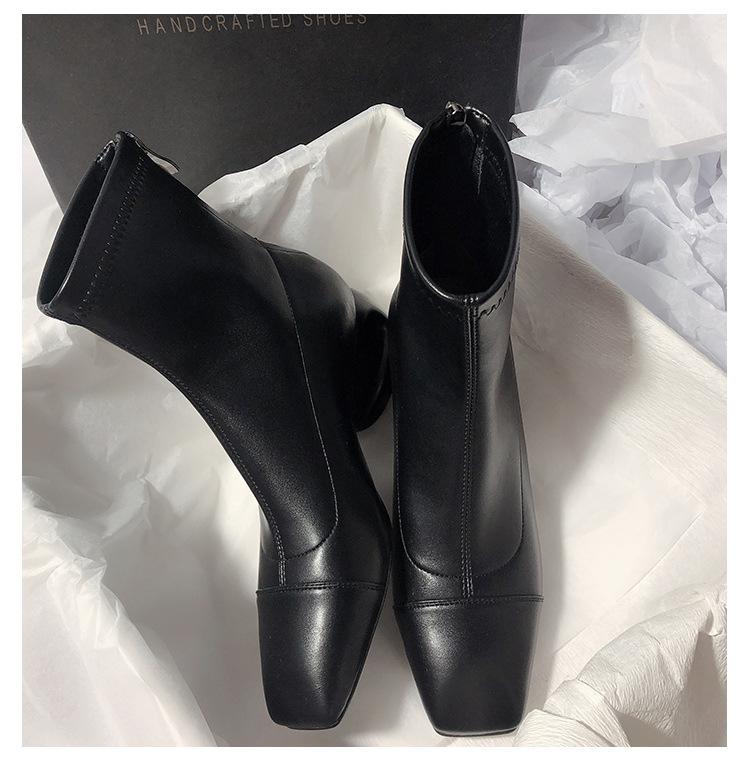 Ботинки мартин квадратный носок толстый каблук короткие ботинки женские весенне-осенние одинарные ботинки новые интернет-знаменитости тонкие ботинки маленькие ароматные французские короткие