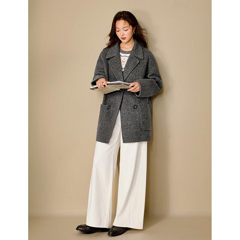 INMAN Women's Alpaca Silk Blend Double-Faced Wool Coat