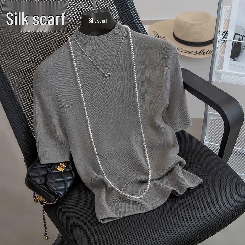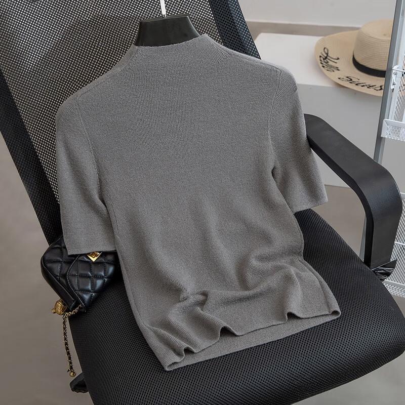 Женский трикотажный пуловер с полувысоким воротником и короткими рукавами