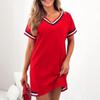 Откройте для себя элегантность и стиль с этим шикарным женским модным платьем. Это длинное платье с изысканным V-образным вырезом и эффектным полосатым лоскутным дизайном легко сочетает в себе влияние европейской и американской моды.. Изготовлено из высококачественной полиэстеровой ткани, обеспечивает комфорт и долговечность, что делает его идеальным выбором как для повседневных, так и для официальных мероприятий.. Благодаря лаконичным линиям и современной эстетике он станет универсальным дополнением к любому гардеробу.