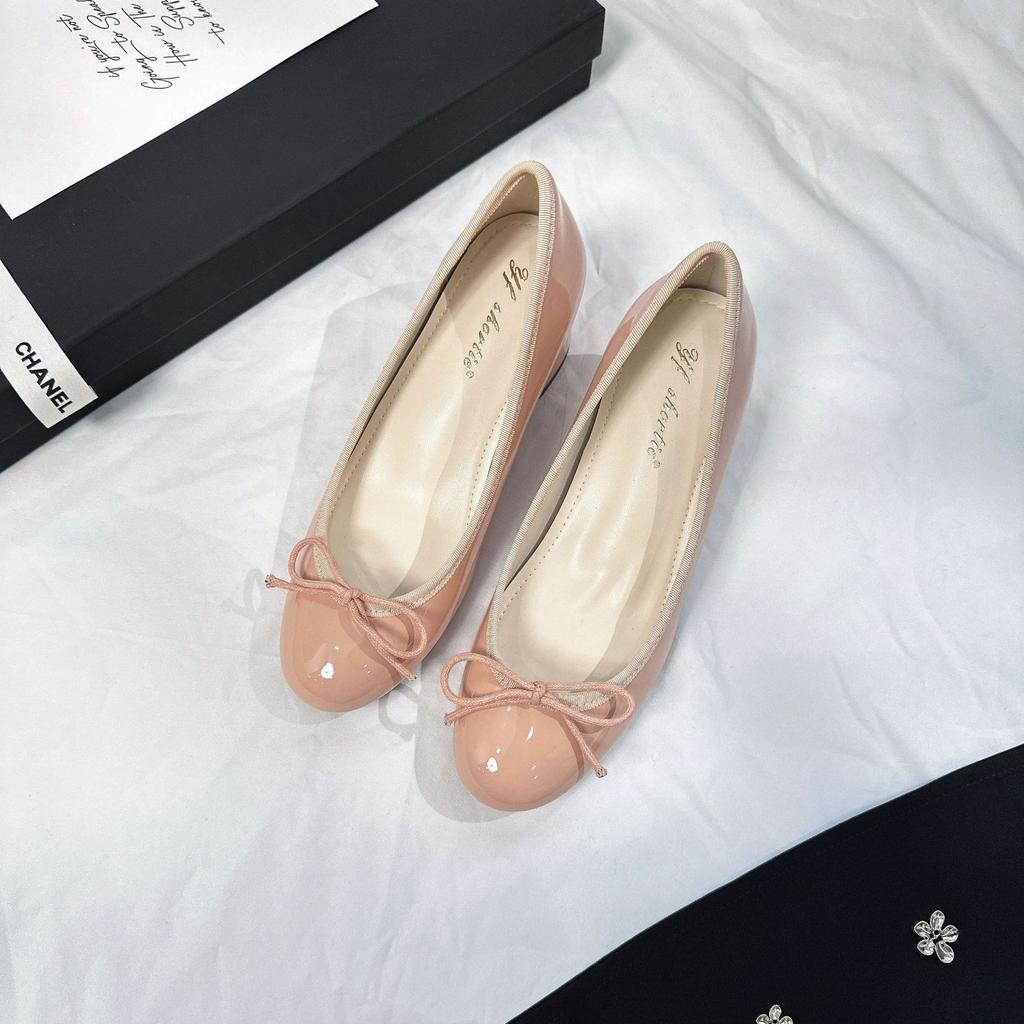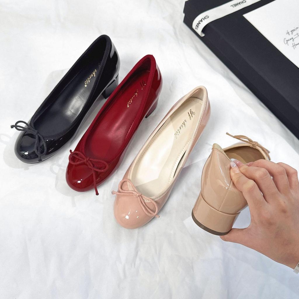 Туфли-лодочки на толстом каблуке с бантом, увеличивающие рост на 6 см, с мелким вырезом, женские, новая коллекция начала осени 2025 года, из французской лакированной кожи, с круглым носком, балетки