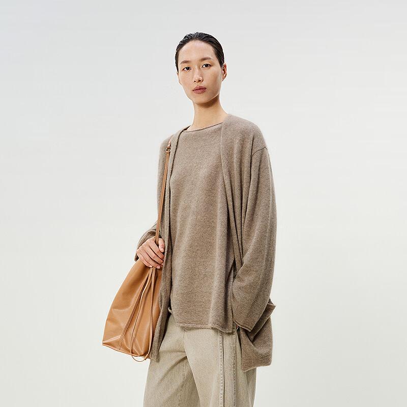 LESS 2025 Spring V-Neck Mid-Length Cardigan