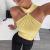 2025 Весна/Лето Женский Топ с высоким воротом, металлическим кольцом, без рукавов, с открытыми плечами, эластичный жилет