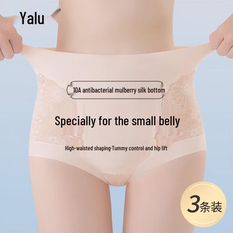Женские трусы-слипы с кружевом Yalu с высокой талией и контролем живота (3-Pack) с ластовицей из тутового шелка