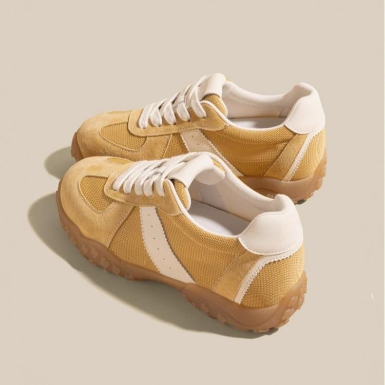 7 см увеличение внутренней высоты немецкие тренировочные туфли женские 2025 новый летний сетчатый дышащий круглый носок маленькие спортивные и повседневные туфли