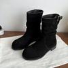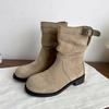 Ретро замшевые плиссированные ботинки с напуском женские 2025 осень новые на толстой подошве толстом каблуке тонкие ковбойские средней высоты