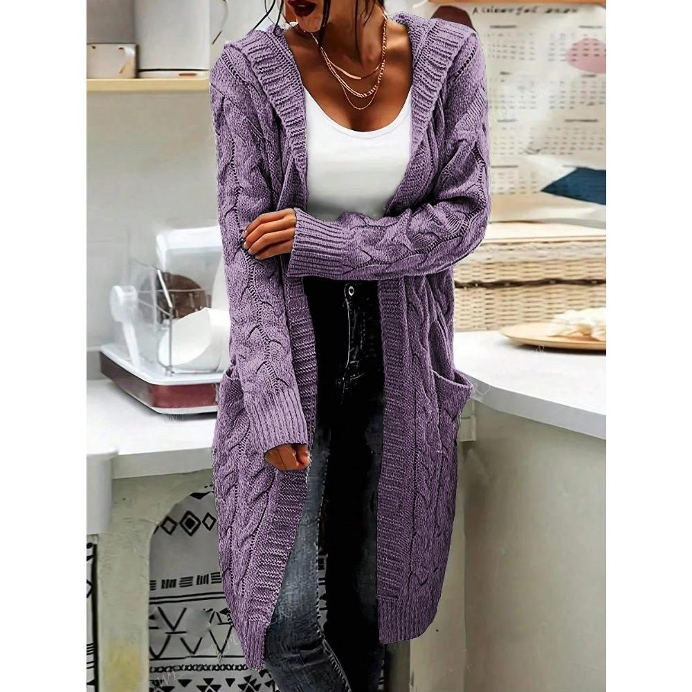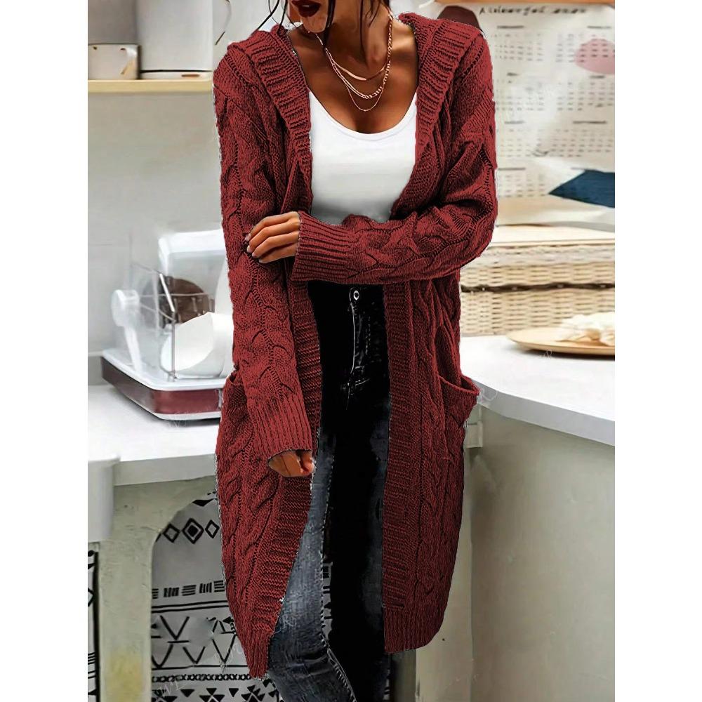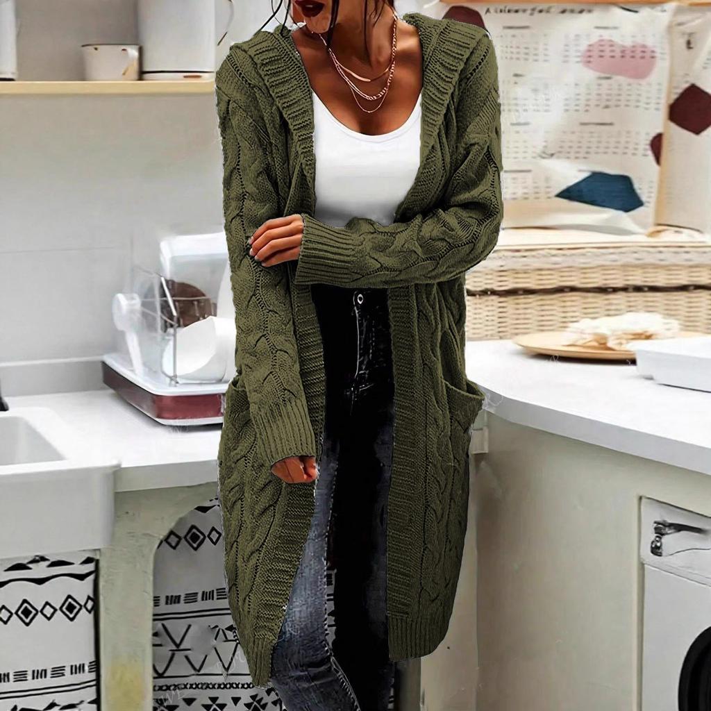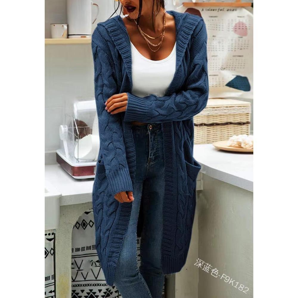 Кардиган с капюшоном, вязаный свитер нового стиля, однотонное пальто с длинным переплетением и карманами для женщин