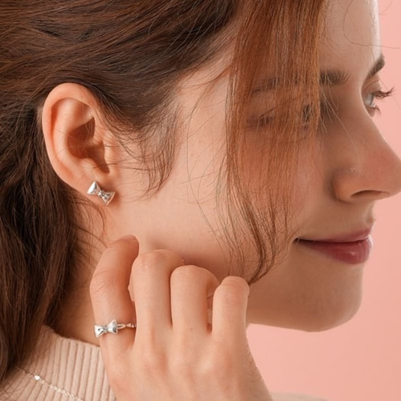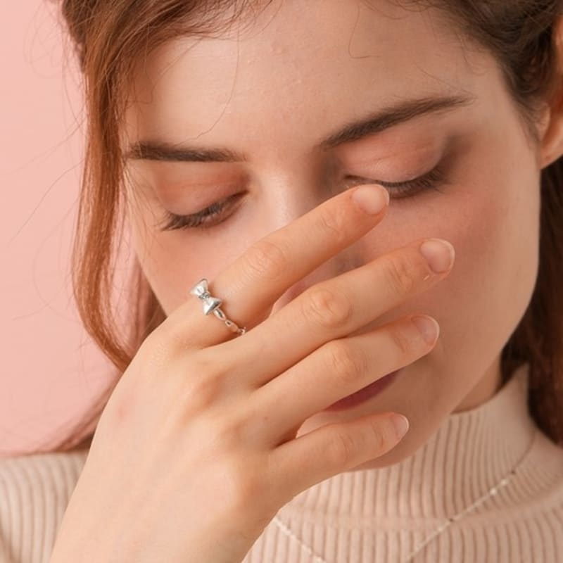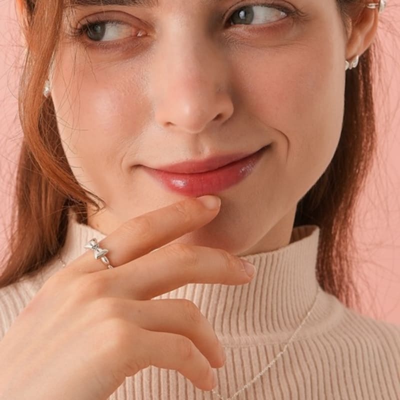 BELLOOGGI Sweet bow ring Natural white topaz butterfly ribbon ring