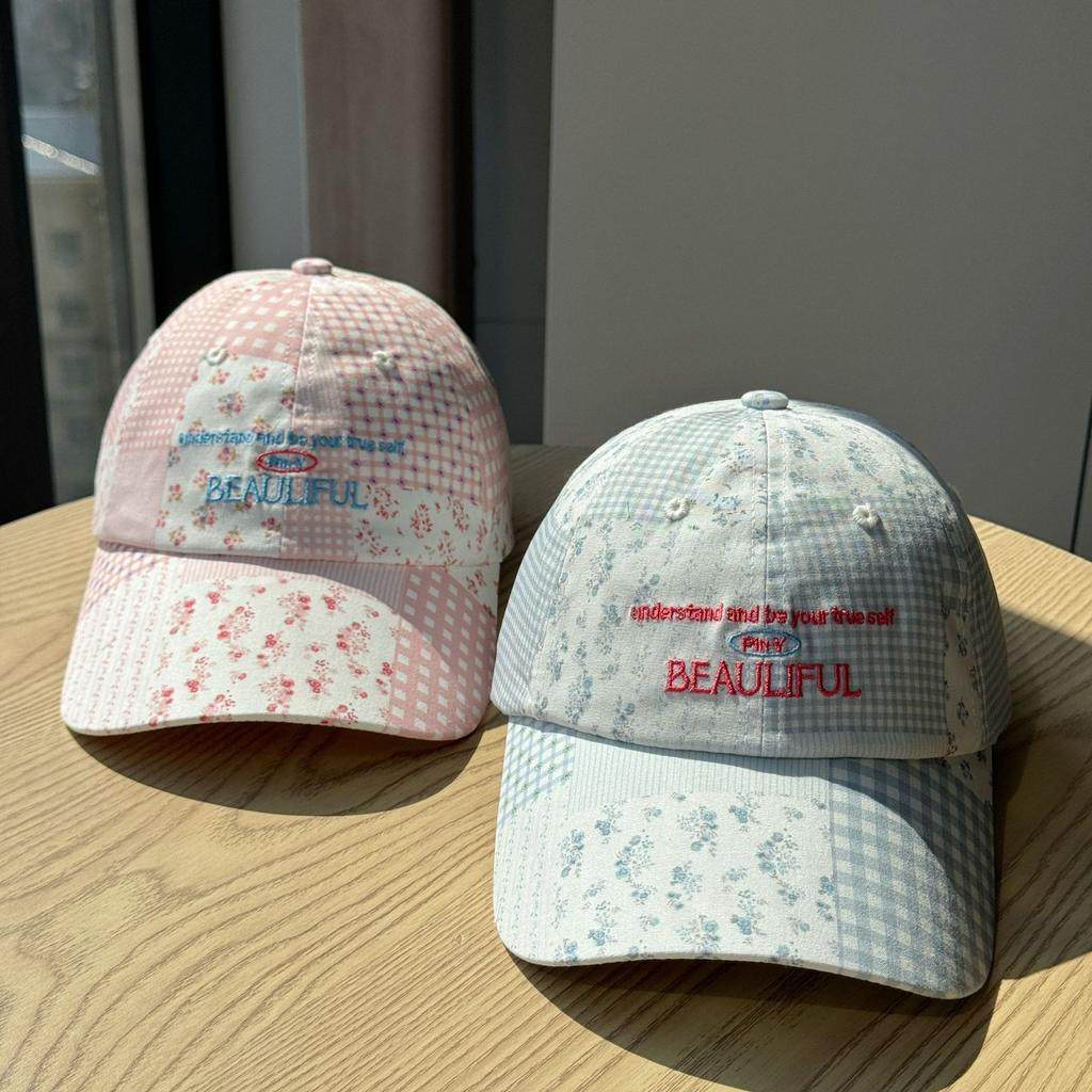 Бейсболка в лоскутной технике с цветочным принтом для женщин, корейская версия, универсальная, подчеркивающая лицо, маленькая кепка с козырьком, трендовая шляпа с широкими полями