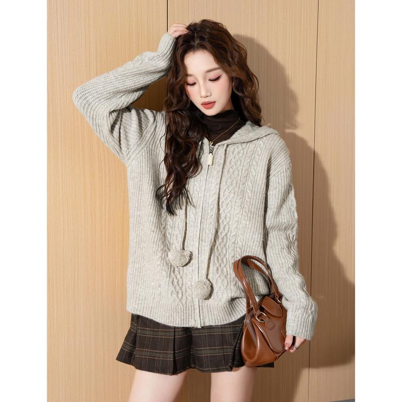 Женский кардиган на молнии с капюшоном и кабельным узором TonLion 2024