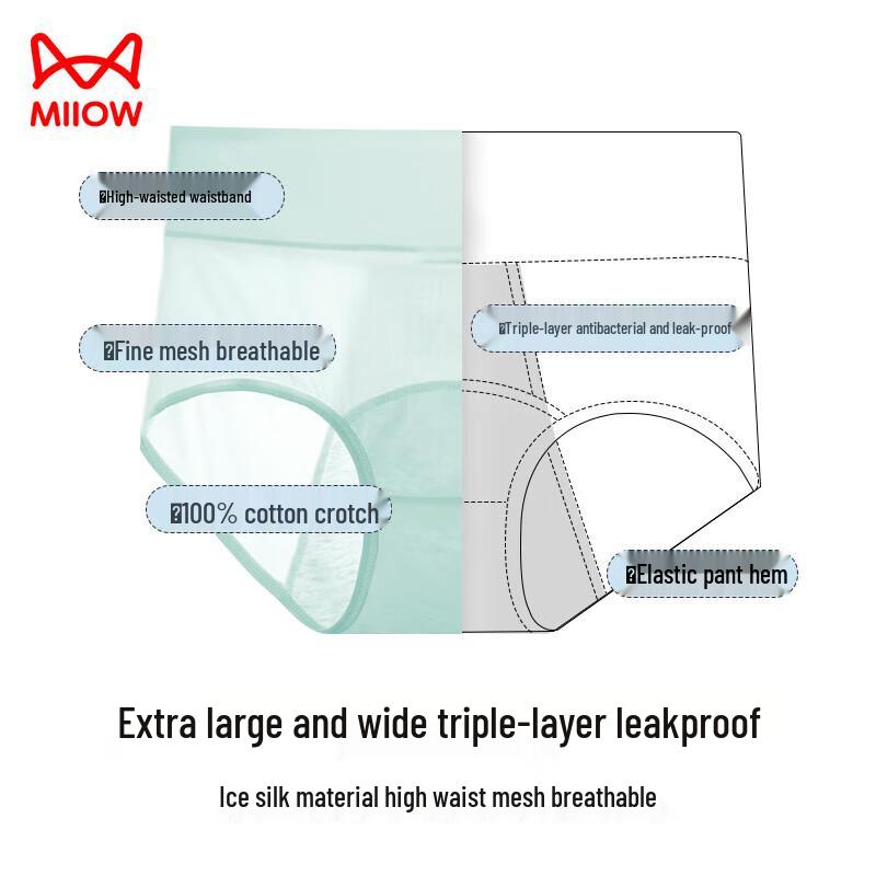 Maoren Women's Ice Silk Breathable Anti-Leak Menstrual Underwear 3-Pack