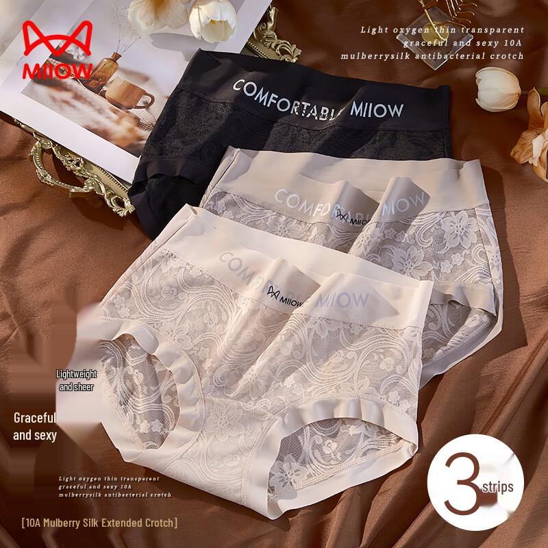 Женские сексуальные кружевные бесшовные трусы-слипы с шелковой ластовицей, 3 шт.