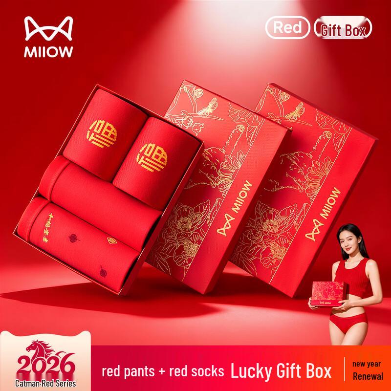 Женские красные хлопковые антибактериальные трусы средней посадки Maoren, подарок на Новый год