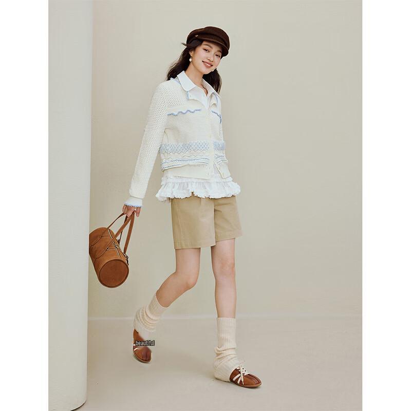 Женский кардиган INMAN ажурной вязки с контрастными полосками